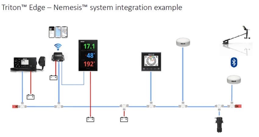 Il processore Triton™ Edge Sailing offre una suite avanzata di dati di navigazione, come i calcoli della linea di partenza, i dati relativi al vento reale e alla calibrazione automatica, la calibrazione e la correzione della velocità dell'imbarcazione e la correzione del vento per l'assetto e lo sbandamento, supporto per tabelle polari, al fine di migliorare la precisione dell'autopilota e l'accuratezza dei dati di navigazione. Le reti Wi-Fi ed Ethernet permettono ai display Triton 2 e Nemesis™ un'integrazione migliorata con i chartplotter Vulcan e Zeus™, mentre grazie all'integrazione con l'app B&G è possibile rivedere o riprodurre i dati di navigazione. Inoltre, il controllo basato su browser web consente una configurazione e messa in funzione facilitata, migliorando così l'accuratezza e la calibrazione dei dati di navigazione nonché la possibilità di eseguire il backup, il ripristino e la diagnostica avanzata.