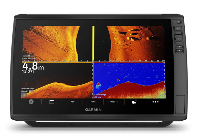 Alcuni modelli sono dotati di un trasduttore GT56 che fornisce un ecoscandaglio tradizionale CHIRP Garmin ed ecoscandagli a scansione UHD ClearVü e SideVü per vedere più facilmente ciò che c'è sotto la superficie.